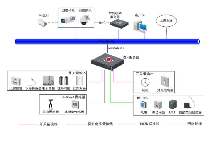 ●支持RS-485接入外部設(shè)備,包括:UPS、電量表、開(kāi)關(guān)電源、有毒氣體探測(cè)器、空調(diào)控制器、溫濕度傳感器、變壓器溫顯表等、風(fēng)速傳感器、消防主機(jī);
