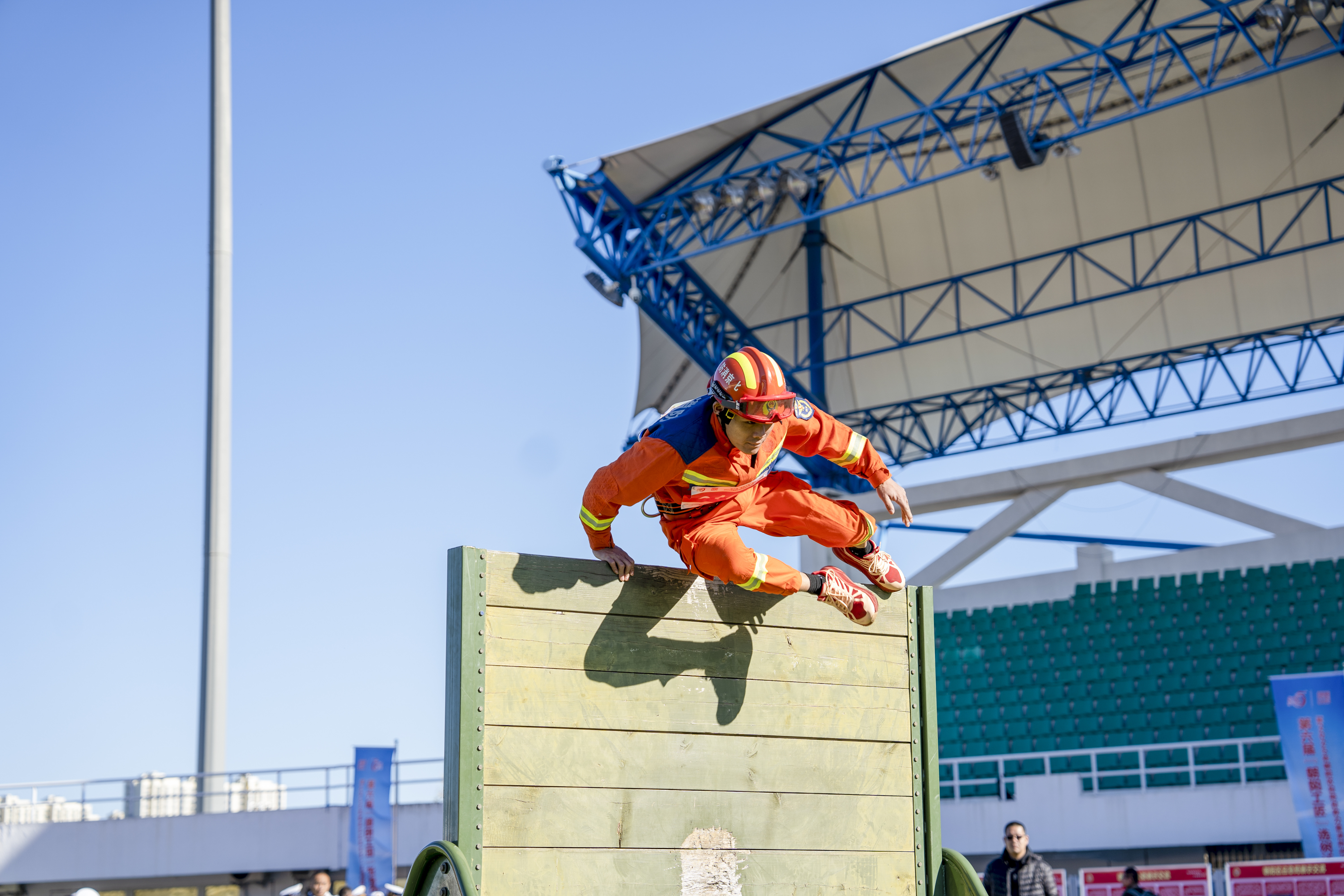 與此同時(shí),在專業(yè)隊(duì)伍展示交流區(qū),159名專業(yè)消防救援隊(duì)員圍繞100米肩梯跑、100米消防障礙、400米疏散物資等7個(gè)核心科目展開競(jìng)爭(zhēng)。這些項(xiàng)目模擬真實(shí)火場(chǎng)中的各種挑戰(zhàn),全面評(píng)估消防指戰(zhàn)員的體能、技能和心理素質(zhì)。