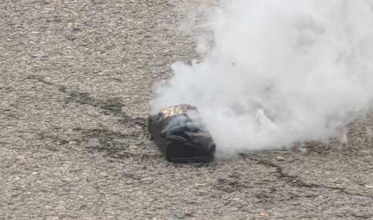 被猛烈撞擊后起火的充電寶。大興消防供圖