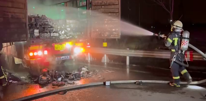 消防員與起火車輛司機(jī)核實(shí)得知,車輛為半掛貨車,車內(nèi)裝有廢舊鉛酸電池900余塊,“當(dāng)時(shí)車尾部火勢(shì)很大,火光沖天,而且冒著濃煙,我們立即將駕駛員疏散到安全區(qū)域,并設(shè)立警戒線,在做好保護(hù)措施后,出3支水槍分別對(duì)起火車輛兩側(cè)、尾部前后夾擊堵截火勢(shì),防止火勢(shì)向車輪以及駕駛室方向蔓延,減少車輛及貨物損失。”